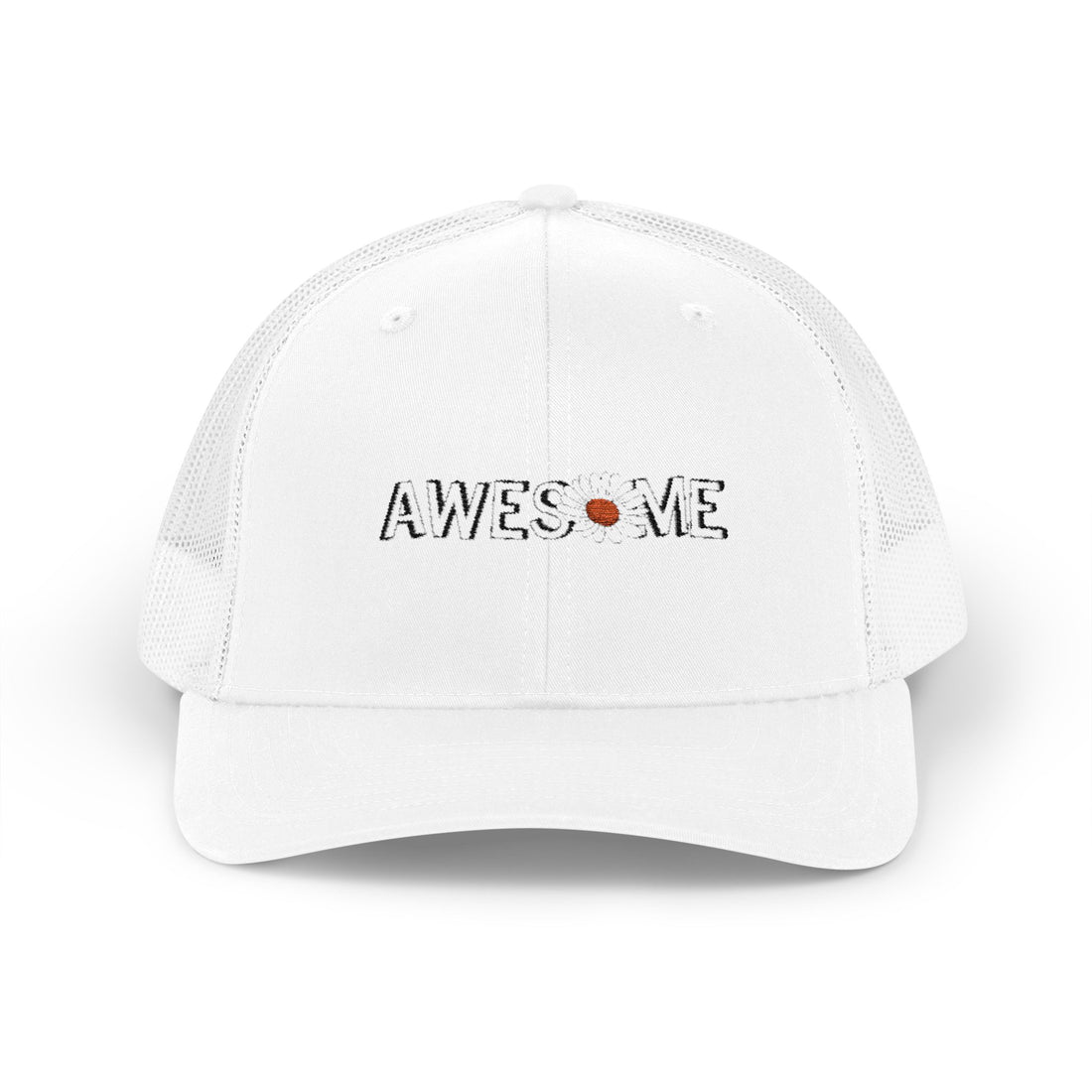 A clean, structured trucker cap with an understated embroidered design that reads “AWESOME” with a...