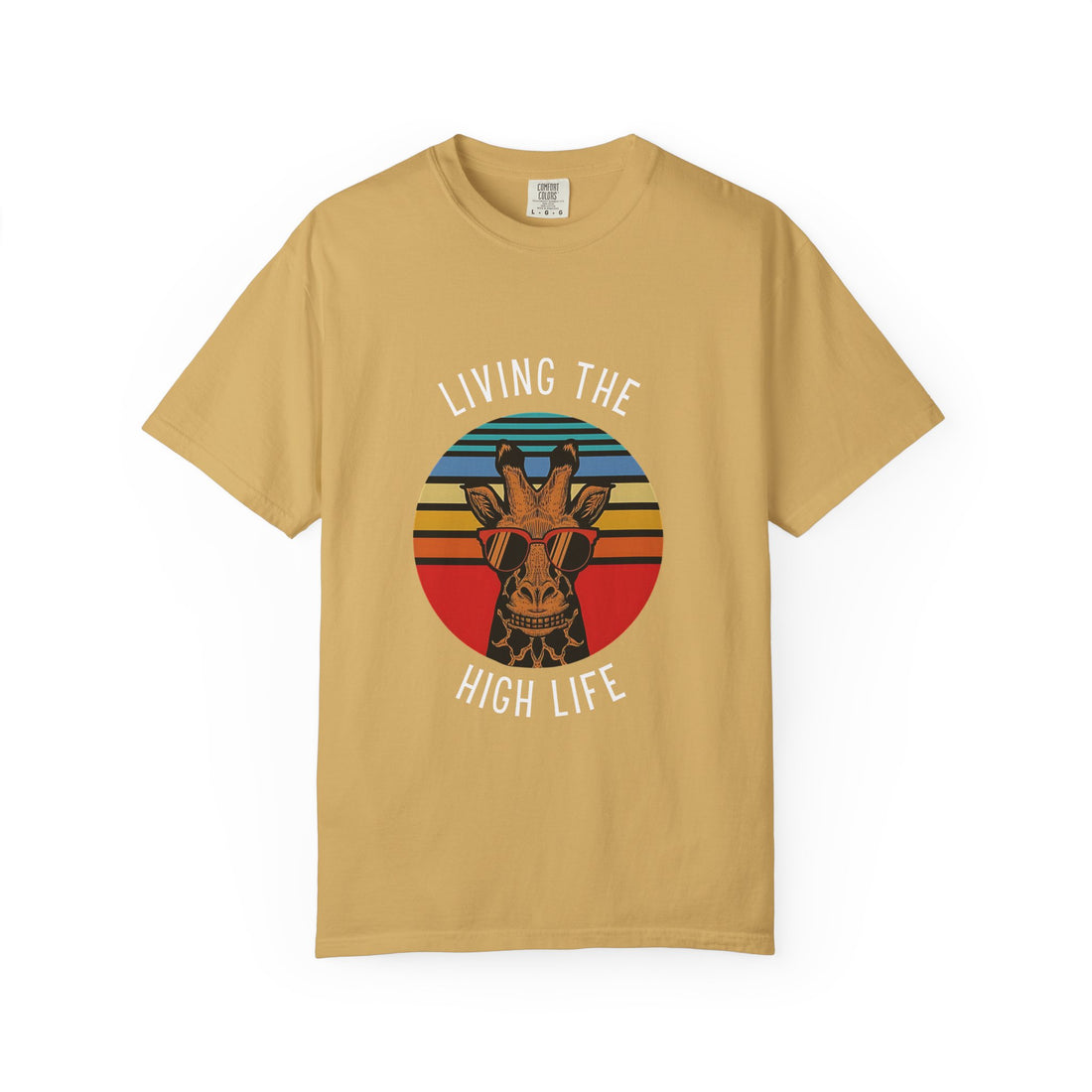 Living The High Life Giraffe T-Shirt | Unisex Garment-Dyed Tee, Trendy Animal Shirt, Birthday Gift, Casual Wear, Summer Style