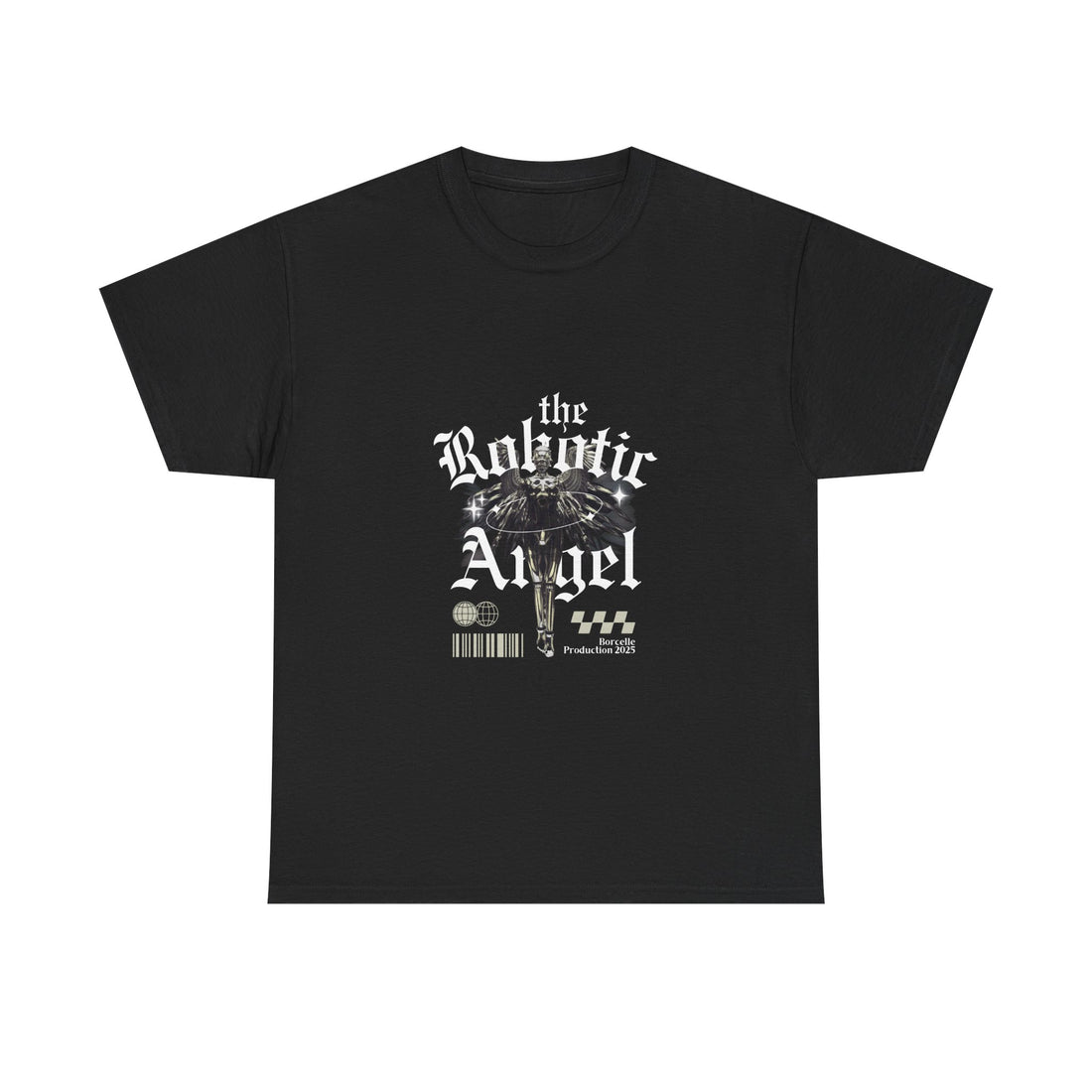 Robotic Angel Graphic Tee, Unisex Heavy Cotton Shirt, Cyberpunk Fashion Top, Retro Aesthetic Apparel, Casual Streetwear Tee