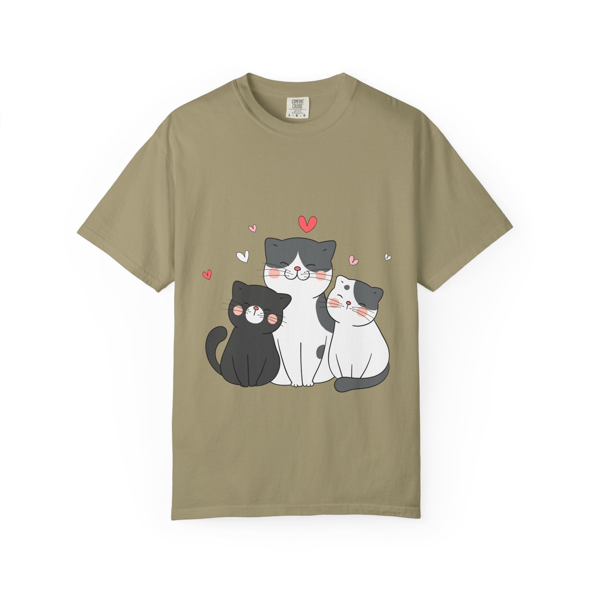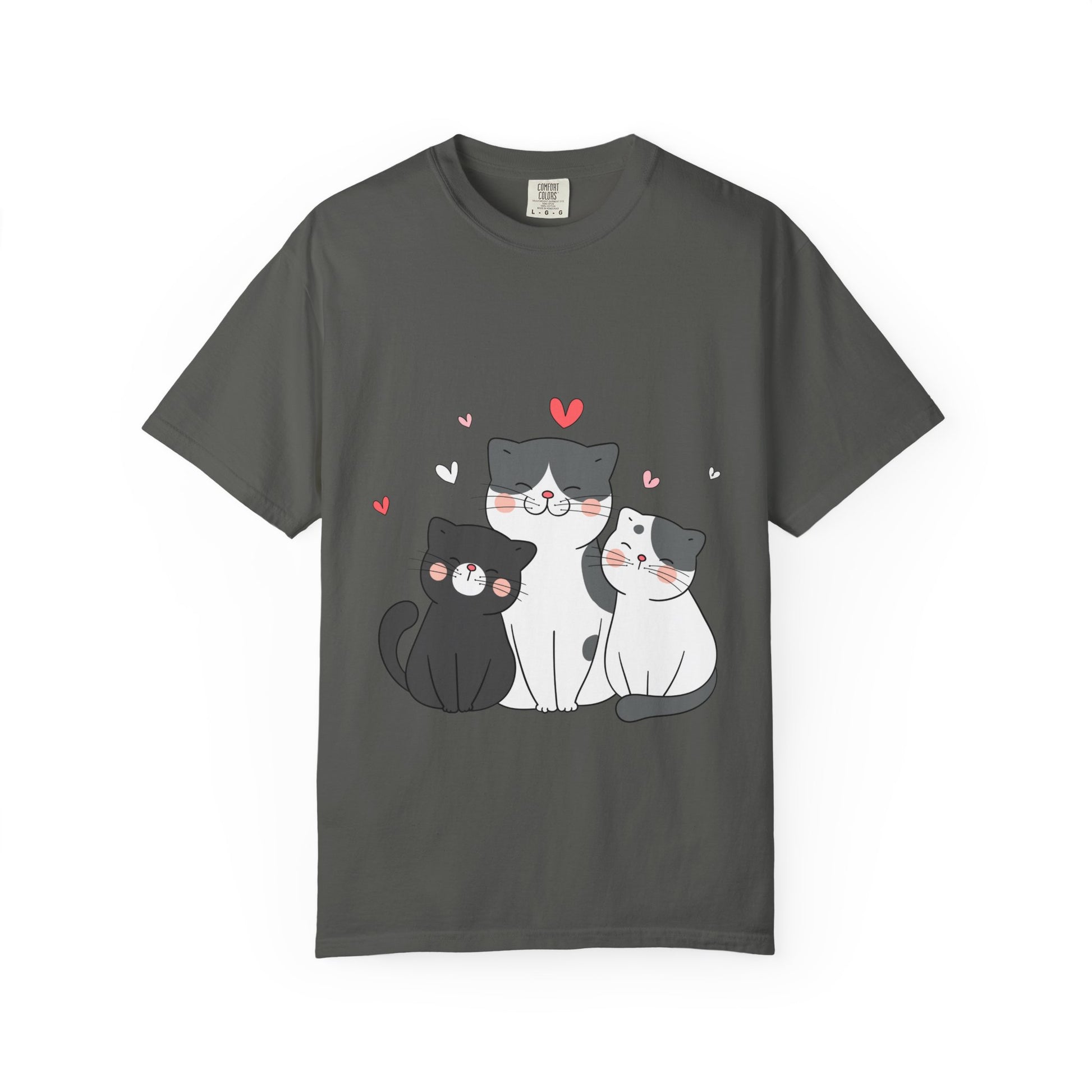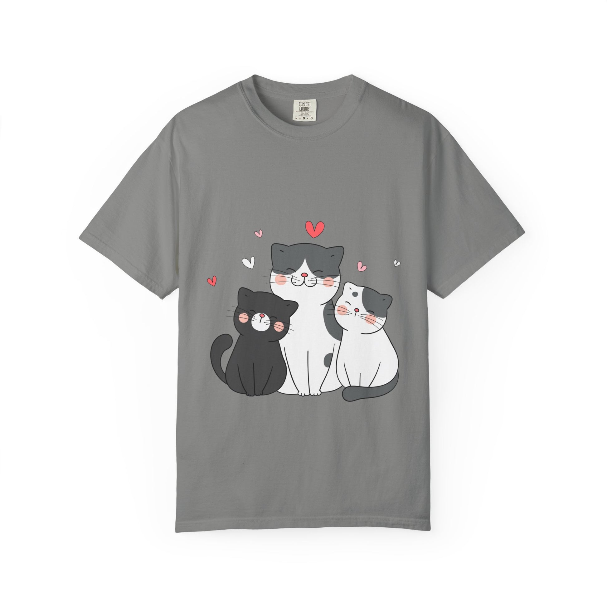 Cat Trio T-Shirt — Cute Kawaii Cats with Hearts Tee