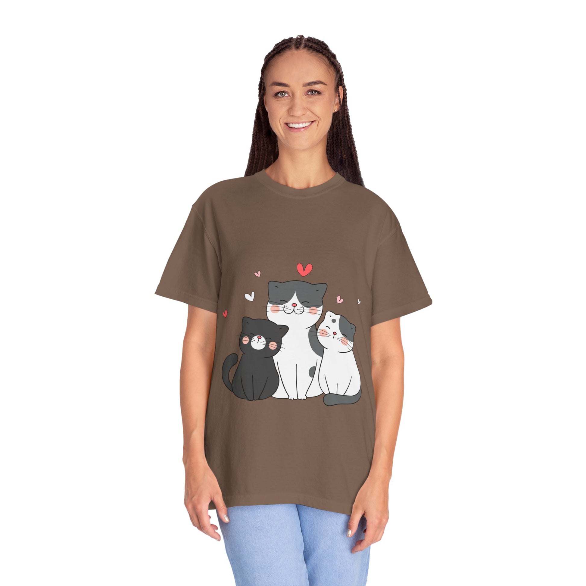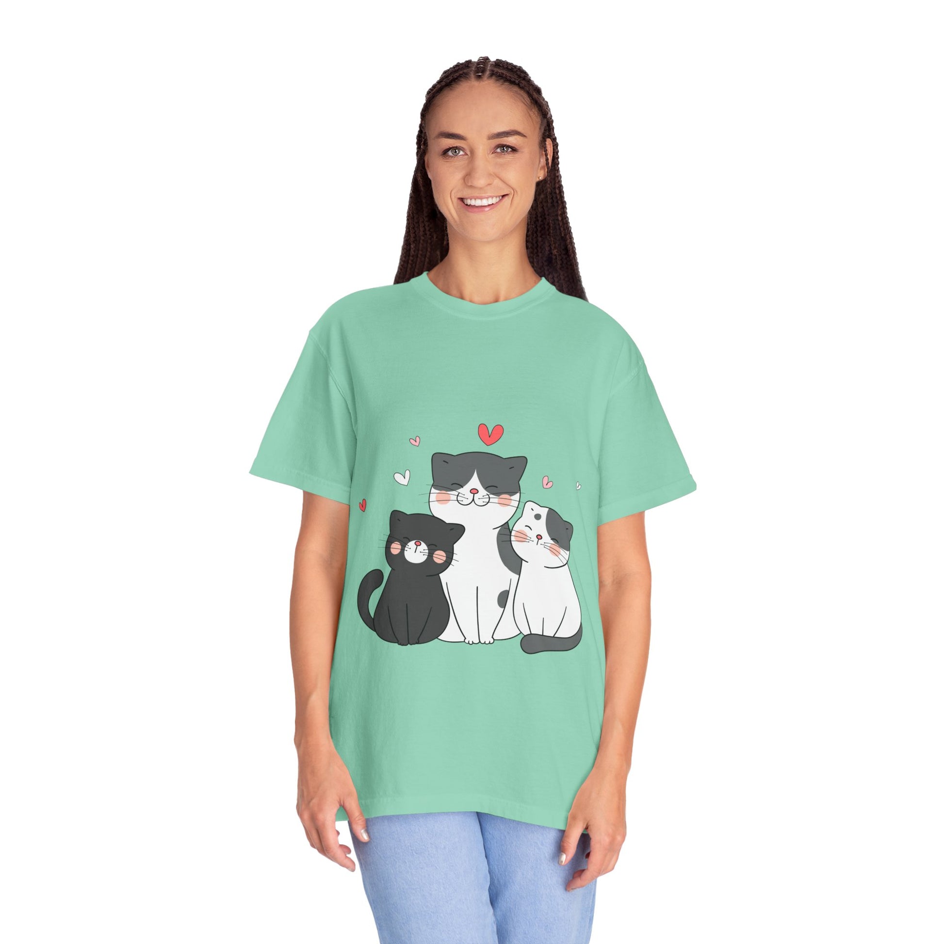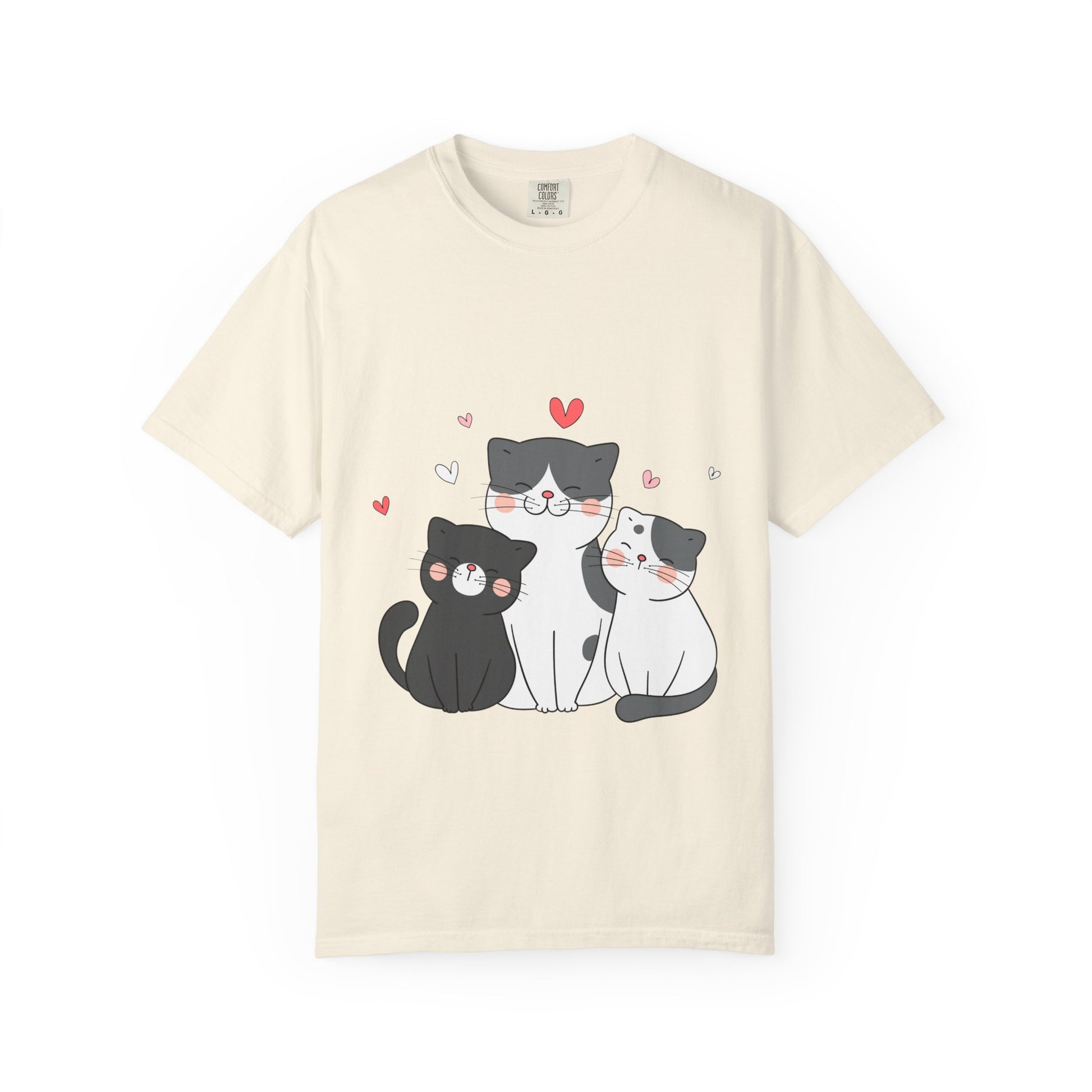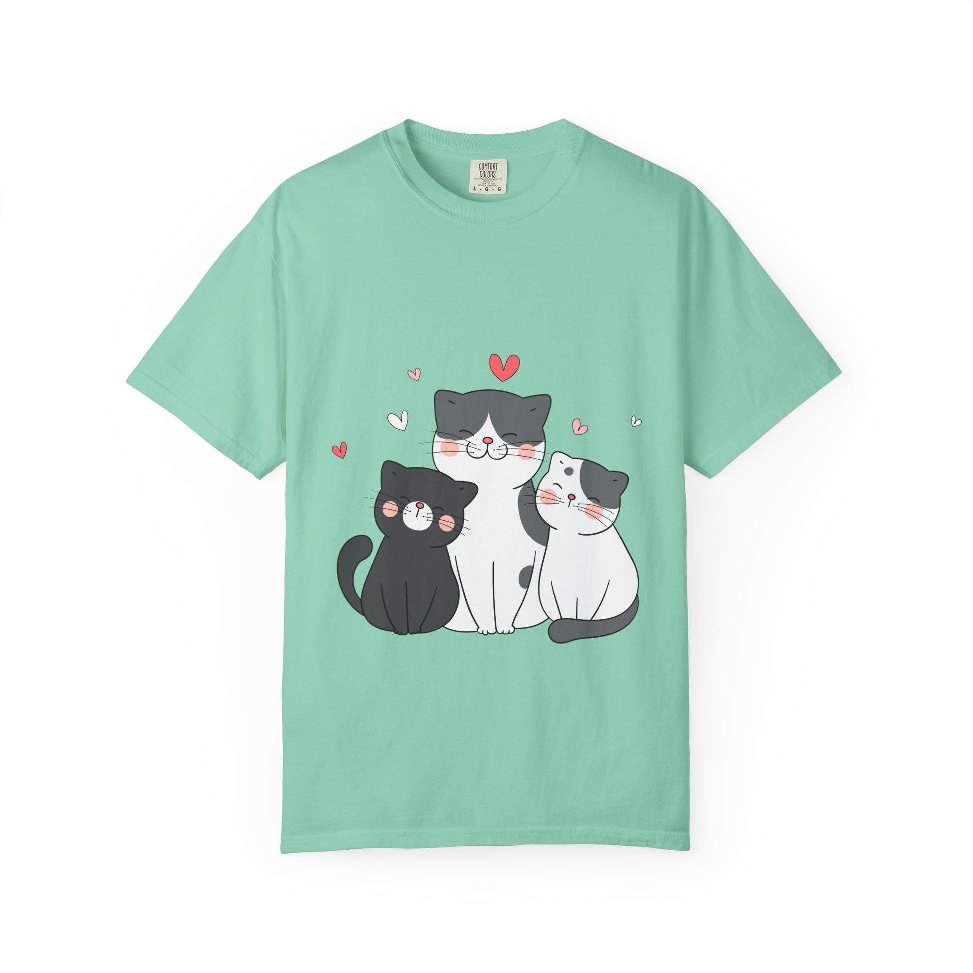 Cat Trio T-Shirt — Cute Kawaii Cats with Hearts Tee