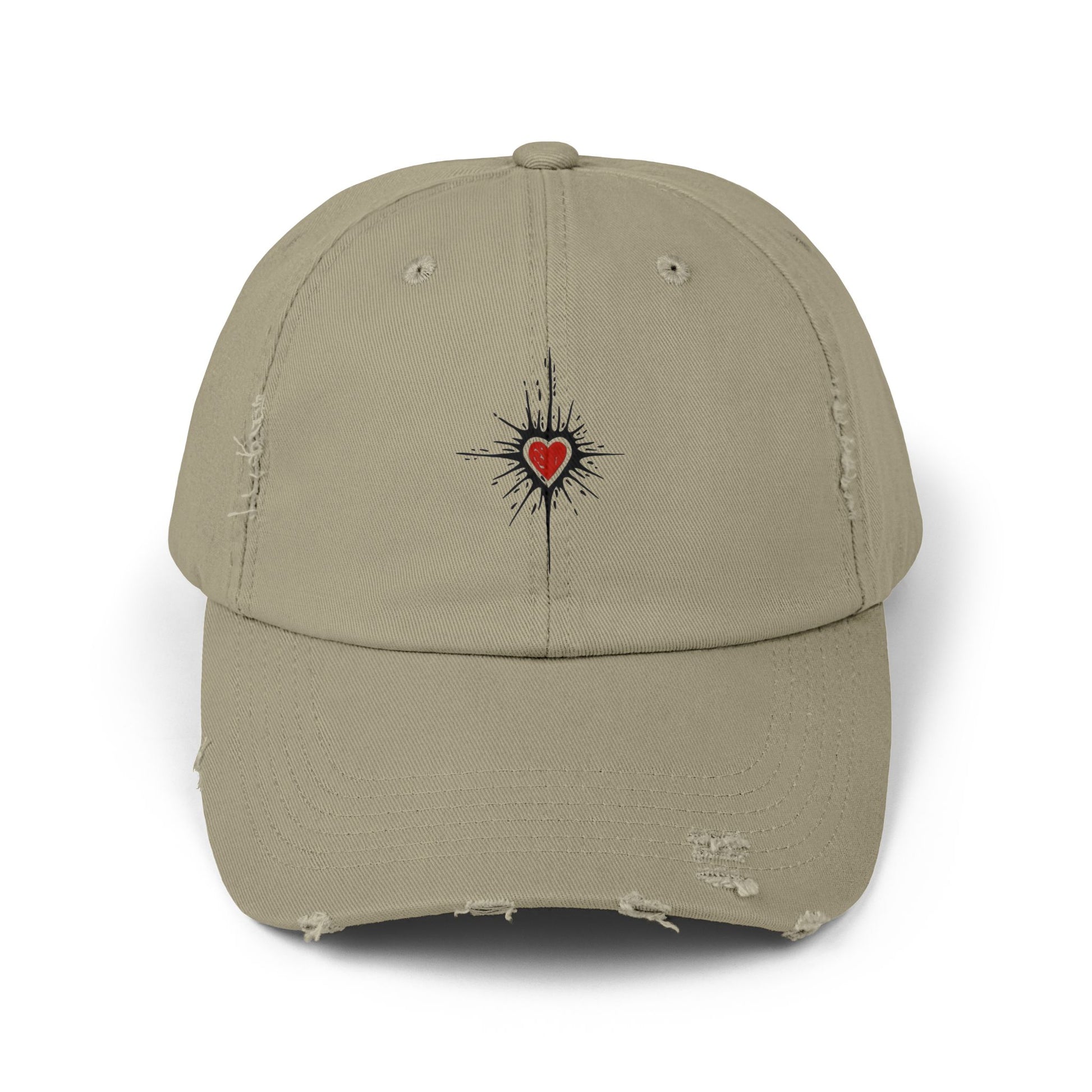 Distressed Baseball Cap — Red Heart Compass Embroidered Dad Hat