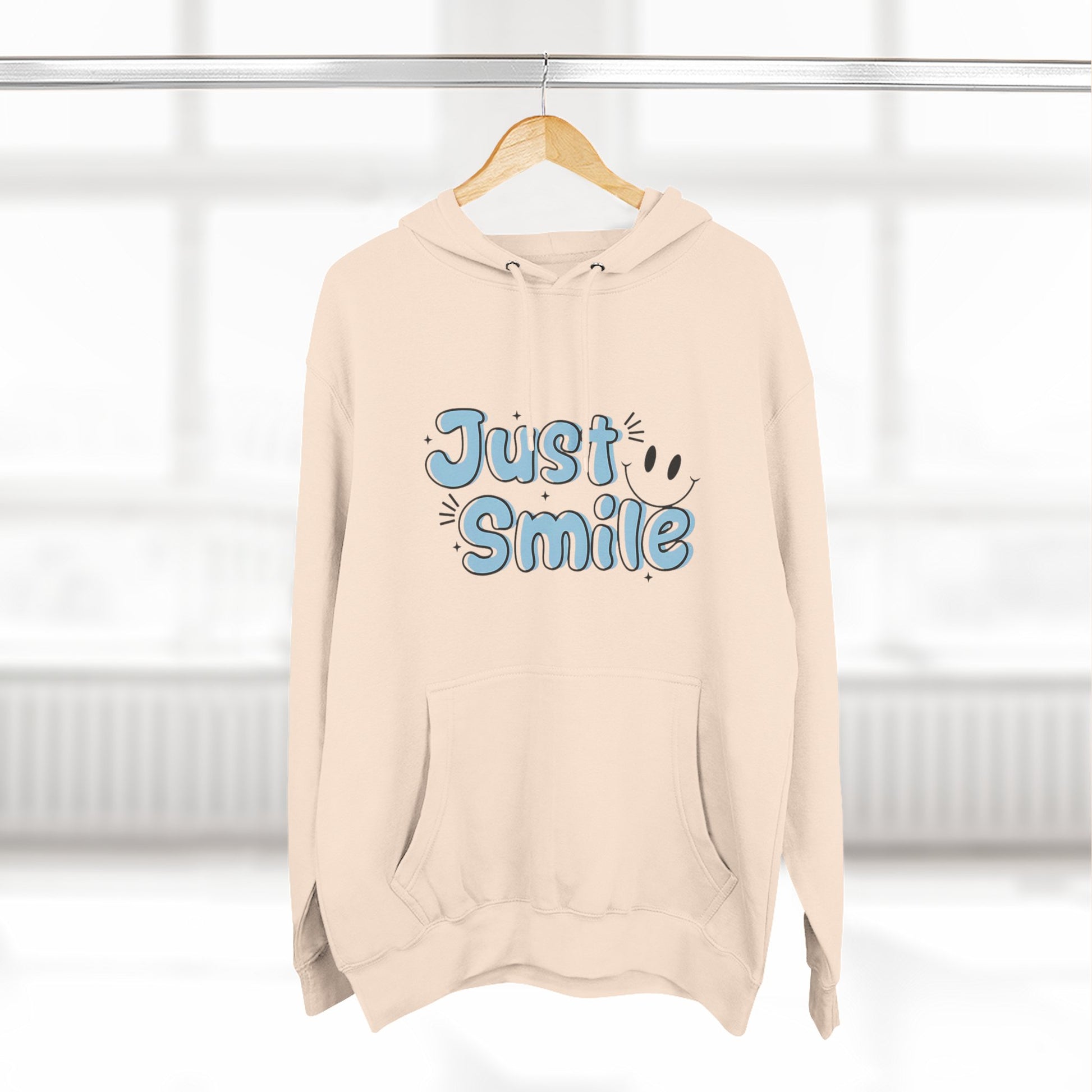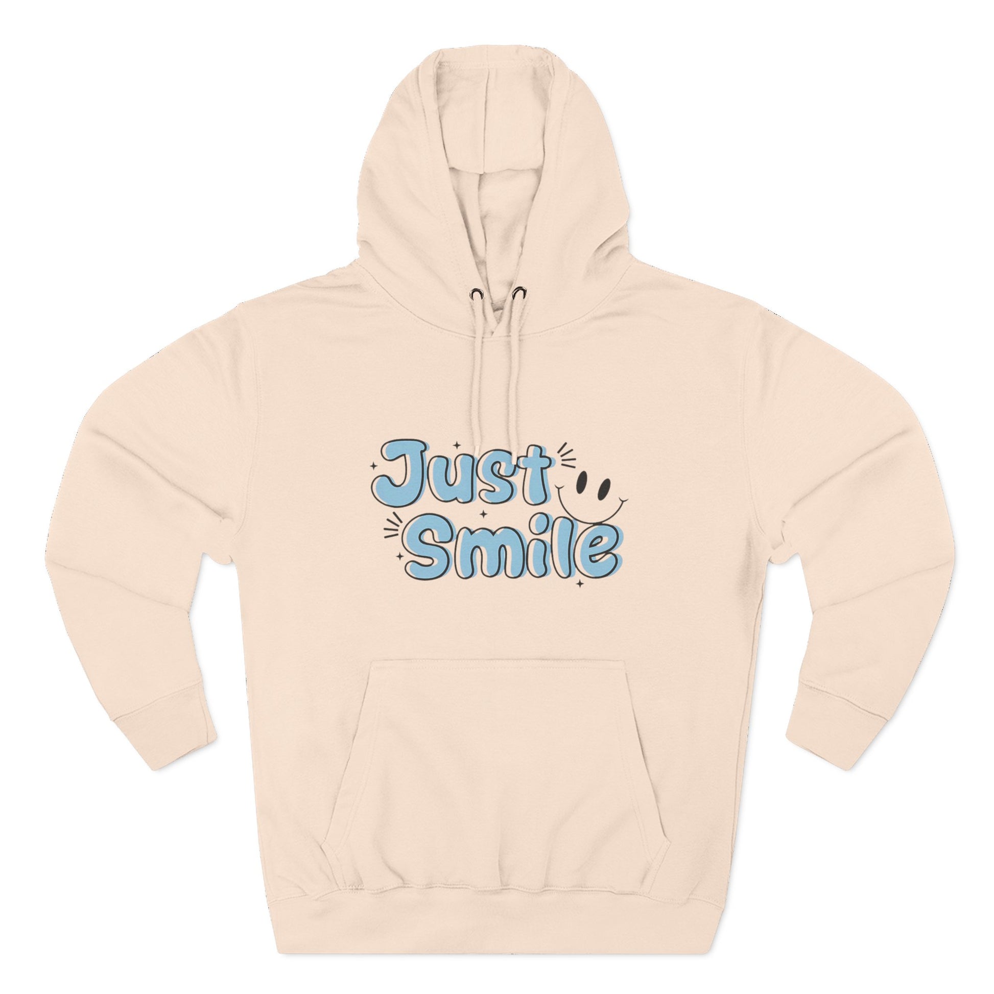 Just Smile Three-Panel Fleece Hoodie, Cozy Hoodie, Gift for Her, Motivational Apparel, Casual Wear, Cute Sweatshirt