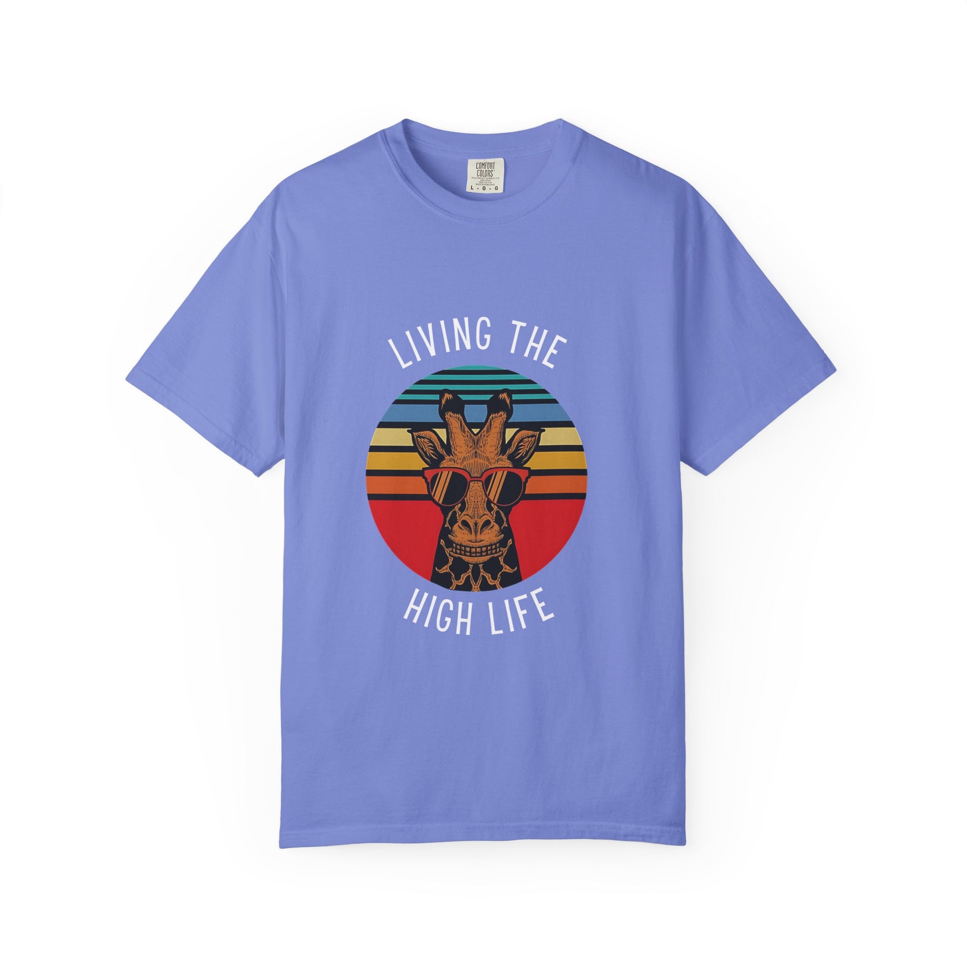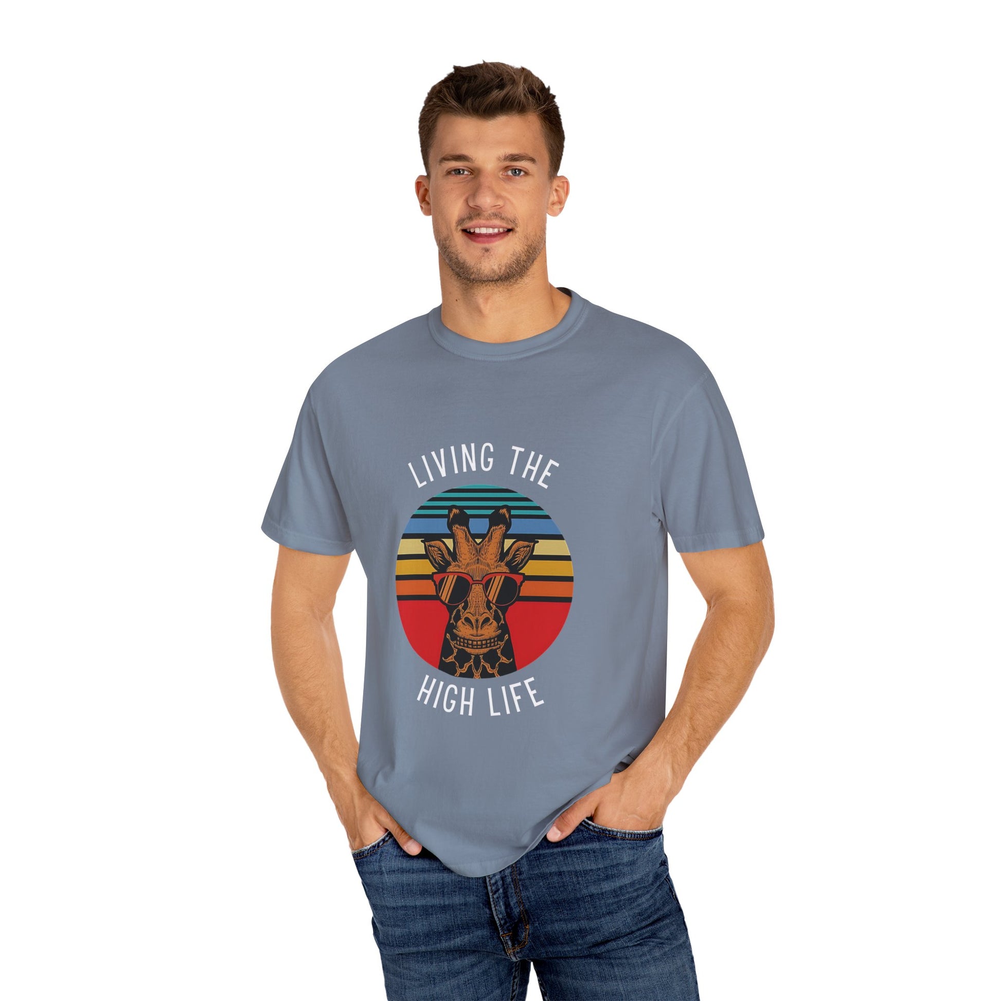 Living The High Life Giraffe T-Shirt | Unisex Garment-Dyed Tee, Trendy Animal Shirt, Birthday Gift, Casual Wear, Summer Style